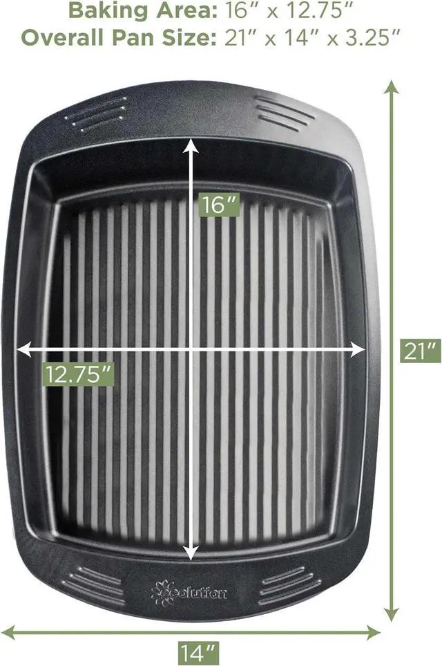 VERSATILE SIZE: Holds up to a 30 lb. turkey or ham but also a great size for lasagna, roasts or casseroles. The interior measures 16-Inch x 12.75 -Inch x 3.25 -Inch. The exterior measures 21-Inch x 14-Inch.