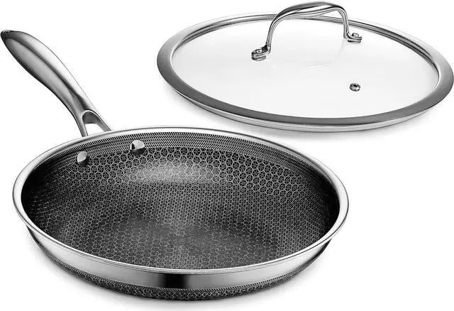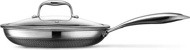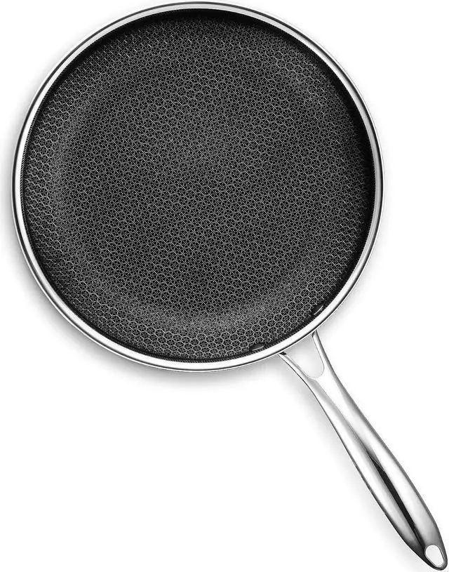 HexClad Cookware features a tri-ply construction of high quality aluminum between two layers of stainless steel laser-etched with our patented hexagonal nonstick surface to provide the ideal hybrid cooking performance and heat distribution.