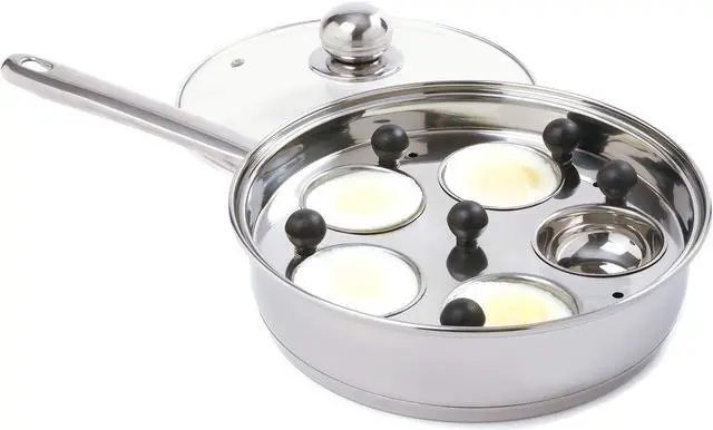 Stainless steel with 5 removable egg poacher cups.