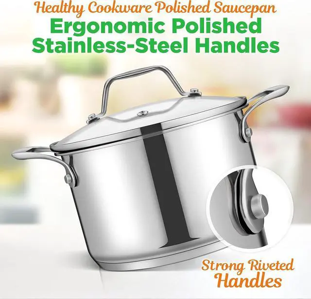 QUARTS: The Stainless Steel Cooking Pot features 3-quart capacity with a tempered glass lid which is the perfect size for boiling eggs, cooking noodles, simmering stocks, and soups or making sauces. Perfect for home cooking