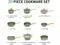 Cookware Set Includes: 2 sauce pan with lid, 1 casserole with lid, 1 wok with lid, 4 fry pans, 1pcs steamer, 1 cup muffin pan, 3 baking form, 1 round spring form, 3pcs silicone utensil, 3 ceramic knives, and 6pcs dining placement