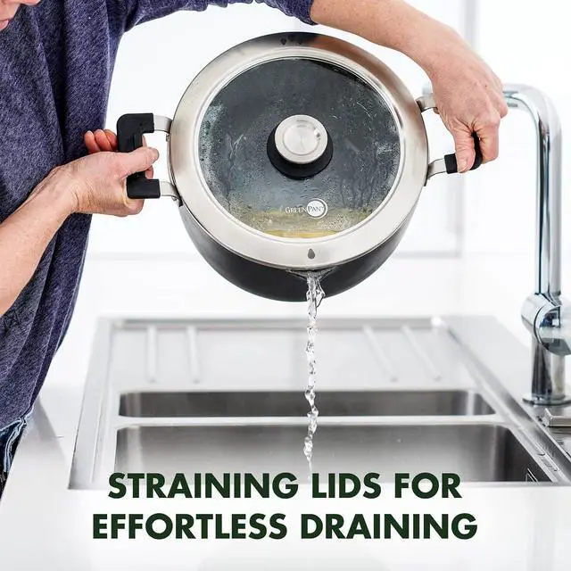Infused with diamonds, GreenPans Thermolon Diamond Advanced healthy ceramic nonstick coating is free of PFAS, PFOA, lead, and cadmium, so it will never release toxic fumes, even if its accidentally overheated