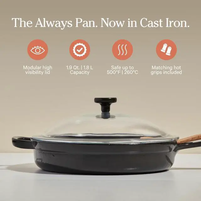 DURABLE & EASY TO CLEAN: With a black matte enameled interior for excellent heat retention and a glossy, easy-to-clean exterior, this Always Pan is the epitome of long-lasting and hassle-free cookware.