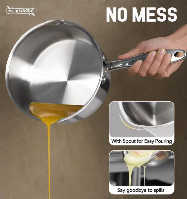 Easy Pouring - Pour liquids easily without mess with this saucepan with pour spout.