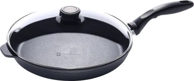 Non Stick Coating: This frying pan with lid has a premium nonstick pan coating that is Swiss made and reinforced with diamonds; Made with healthy cooking in mind, you' ll never need unnecessary oil or fats