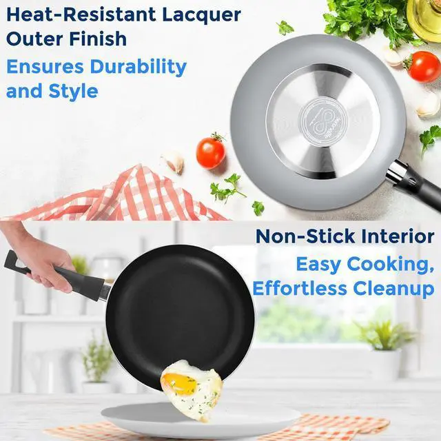 Perfect for gas, electric, and ceramic cooktops, this PFOA & PFOS-free set prioritizes safety and sustainability. Whether you're frying, sautéing, or simmering, this lightweight yet durable set delivers exceptional performance for everyday cooking.
