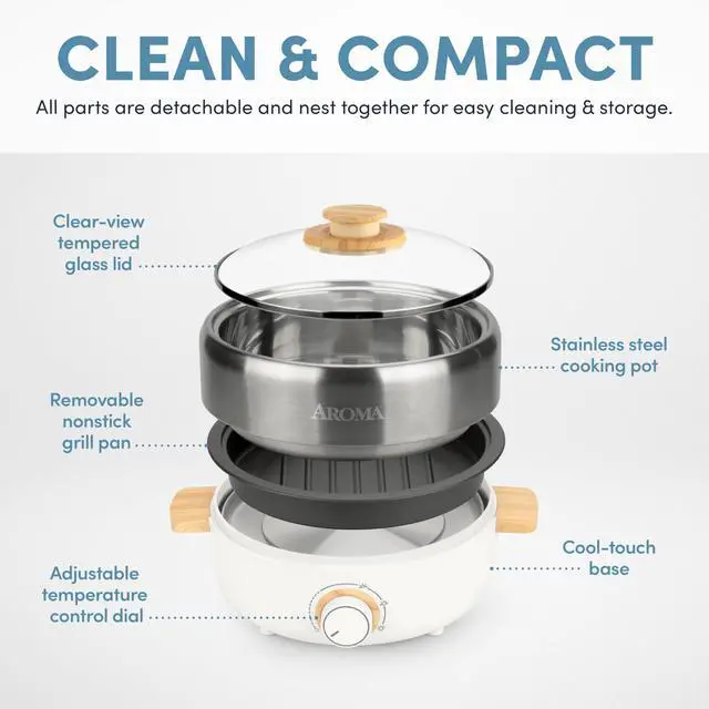 Cook hot pot or Korean BBQ right at the table. The adjustable heat dial (300°–450°F) gives you full control for meat, veggies, and more.