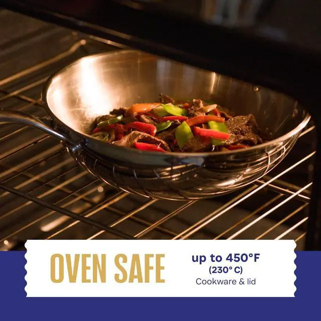 5-Ply Stainless Steel Wok Set, 12-Inch 5-Quart with Lid and Steamer - Induction Compatible, Oven Safe 800°F - Non-Toxic, No Coatings - Even Heating - Built to Last Generations