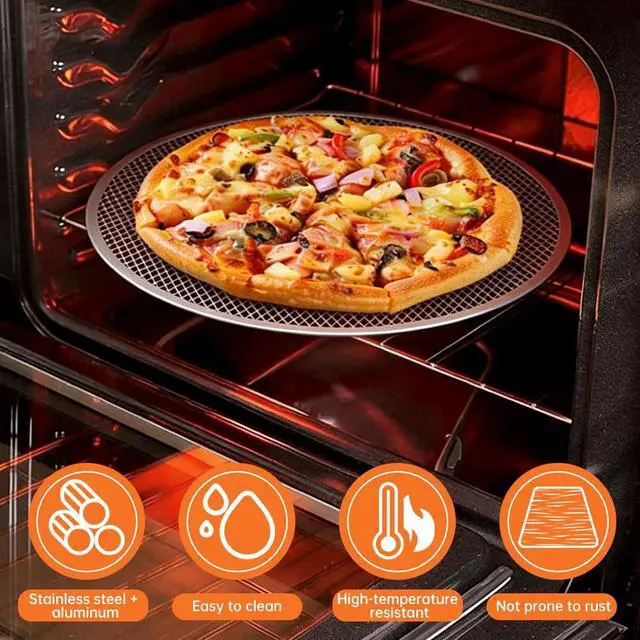 High Temperature Resistant Stainless Steel + Aluminum Alloy Material: Round pizza screen is made of aluminum alloy with excellent high temperature resistance, which ensures stability and no deformation during the high temperature baking process, and is durable, helping you to bake perfect pizzas easily