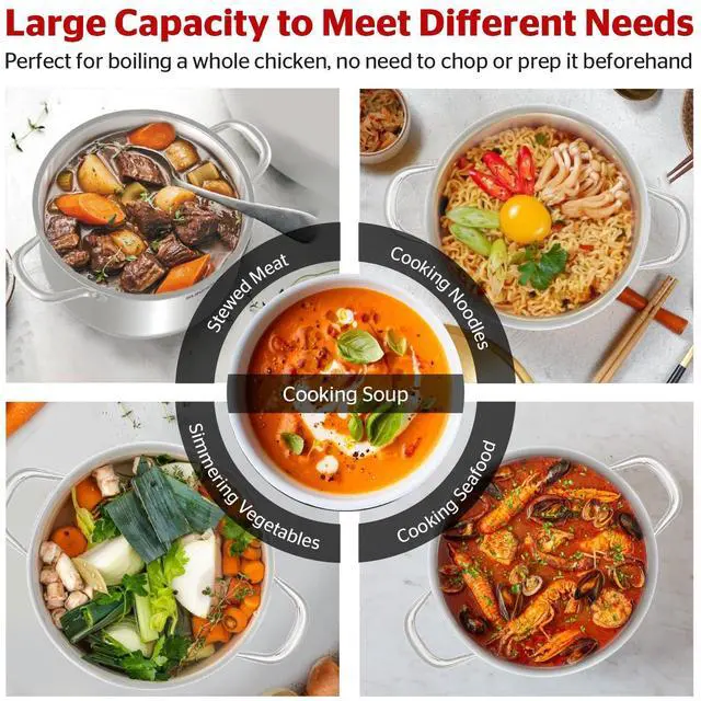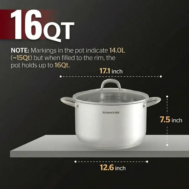 SUNHOUSE 16 -Quart Stainless Steel Stockpot Heavy-Duty Induction Pot with Lid and Riveted Handles Ideal for Soup, Seafood, Stock, Canning, and Catering for Large Groups and Events