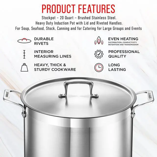 | Included Components | 1x 20 quart stock pot with handles and 1x lid. |