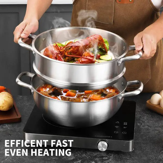 Delarlo Tri-Ply Stainless Steel 12 Inch Everyday Pan With Lid,kitchen everything pan, Chef's Pans,Induction Cooking Pot, 7QT Oven Safe Stock Pot, Up to 600