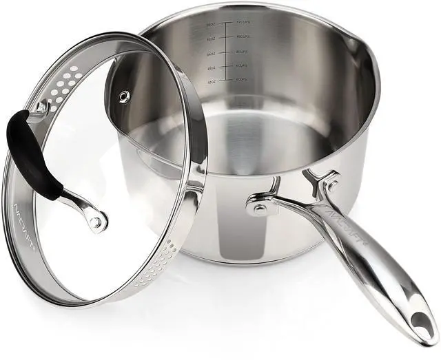 TRUST AVACRAFT, TRUST QUALITY! Ideal Kitchen Utensil to Measure, Mix, Boil and Strain in same Sauce Pot. AVACRAFT stainless steel cookware Sauce Pan designed to last like new for lifelong! Use it efficiently for boiling sauce, gravies, pasta, noodles, making vegetable, soup, chicken stocks and much more. High quality stainless steel, highly resistant to stain, rust, corrosion while maintaining the shine and looks. Healthy cookware than nonstick pot or nonstick cookware pots and pans. Double riveted for strong and life long use. Best pans for cooking. Best suited induction pots and pans. Lid: All-In-One Glass Lid with Two Side Straining Holes For Easy Straining. No need of colander. Pan with lid, pot with lid. Easy Pouring: Provision of spouts on both sides of sauce pot for easy pouring of gravies! Versatile: Variety of sizes, use them as Sauce pan, soup pot, cooking pot, milk pan, tea pan. Convenience: Designed To Use With Gas, Electric Ceramic, Induction Cook Tops! Induction cookware. Designed not too heavy and not too light for easy handling. Hassle Free Usage: Dishwasher safe, Freezer and Refrigerator safe. Space saving cookware. AVACRAFT Cookware & kitchen pots are designed to be safer than nonstick cookware. Looks Great: The 18/10 shiny steel along with lid add great looks to your kitchen! World's best stainless steel pots. Small saucepan with lid to big sauce pan with lid. This always pan comes with glass top stove cover. Best Gift: Best gift for family, friends and loved ones as Housewarming gift, Wedding gift, Thanksgiving gift, Christmas gift, New Year gift. Check out our stainless steel cookware set. Designed with survey, feedback and study of latest trends.