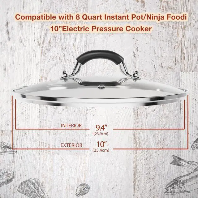 The 10 inch glass pot lid was made of high quality tempered glass and 304 stainless steel, it fits nicely on most 8 Quart electric pressure cooker, compatible with Instant pot 8 Quart and Mealthy pot 8 Quart and more. There's also a vent hole on the lid for vapor exhaust or inserting a thermometer. This lid was designed for your daily cooking, very clear to see what's status of your foods.