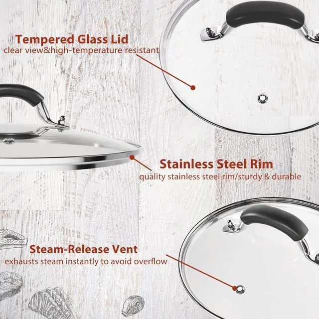 Heavy duty tempered glass and stainless steel rim design makes this glass lid durable and won't break even when dropped from 7 feet