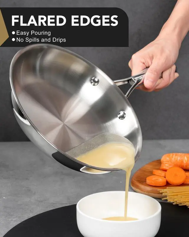 Flared edges for easy pan-to-plate transferring with no spills and drips