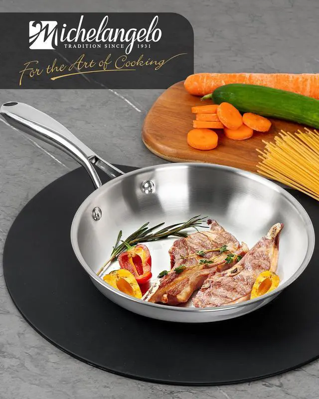 Thick bottom with aluminum core for quick heating. Suitable for all stovetops, including induction.