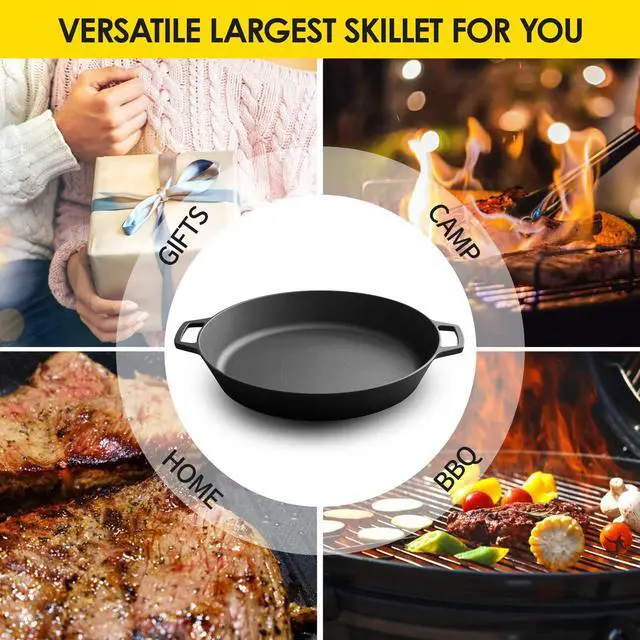 Pre-Seasoned Large Cast Iron Skillet 17 Inch, Dual Handle Outdoor Camping Frying Pan, Pizza Pan, Use for Grill, Stovetop, Induction, Oven Safe Cookware