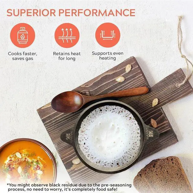 Craft perfect, fluffy appams with crispy edges using this 8.5 -inch cast iron appam pan. Pre-seasoned with natural oils, its ready to use and improves with every cook. The textured surface enhances seasoning and flavor, while its durable cast iron construction ensures even heat distribution and lasting performance. Compatible with gas, induction, electric, oven, grill, and open flame, its ideal for appams, pancakes, eggs, and more. Hand wash and lightly oil after use to keep it in peak condition for generations