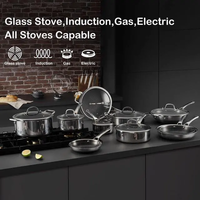 ENHANCED TECH]: Featuring a cutting-edge enhanced nonstick coating with a snowclad surface design, our non stick frying pans offers longer-lasting, superior non-stick performance. No more worries about peeling or flakingthis set offers exceptional durability and is designed to withstand the use of metal utensils. Additionally, our clad surface is 50% larger than that of typical hex pans.