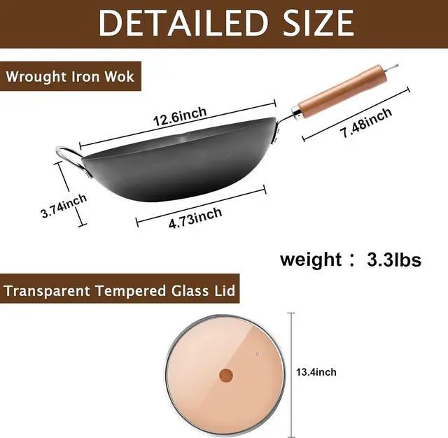 400-Year Heritage Craftsmanship (Pure iron wok) --Forged by China' s oldest wok maker using nitride technology for a chemical-free, naturally nonstick surface that outperforms carbon steel in durability and heat retention.