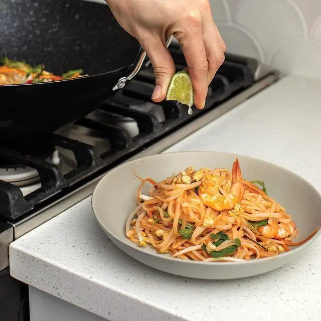 Our Spun Wok boasts a ceramic non-stick coating which is a Swiss-made 3-layer nano coating promoting seamless stirring and ingredient tossing, say goodbye to stubborn food residue