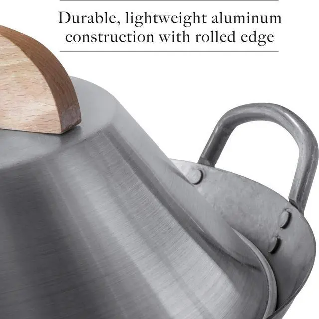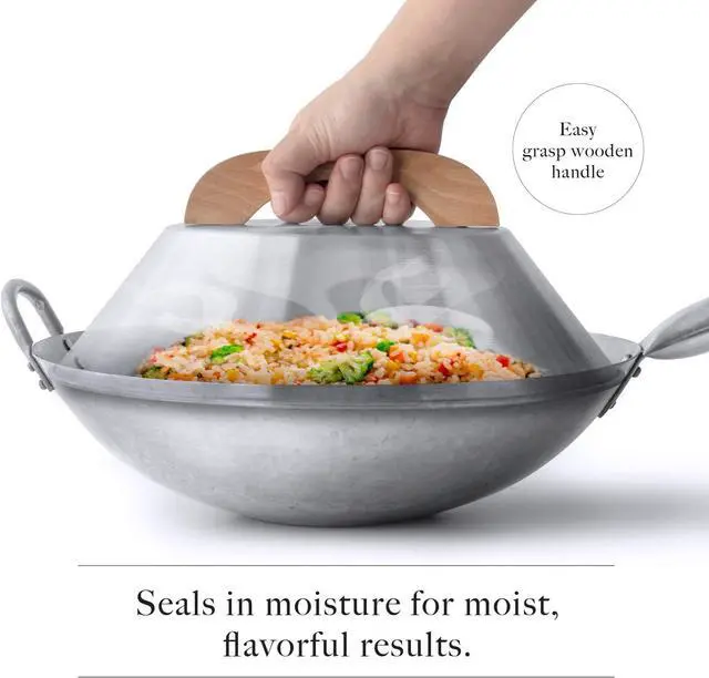 Traditional Flat-top dome ensures optimal heat distribution. Seals in moisture for flavourful results. Ideal for steaming, braising and minimising splatter when deep-frying.
