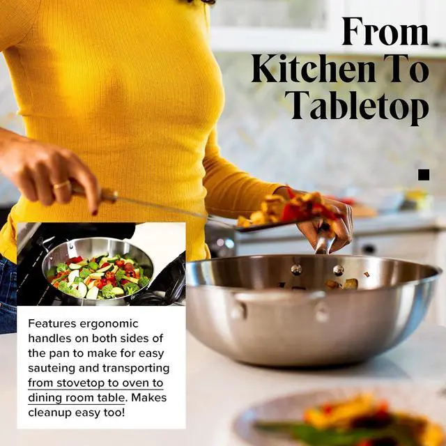 LIGHTWEIGHT & EASY TO HANDLE: Delivers carbon steel wok performance while being lighter weight. The dual handles make it easy transport the wok from stovetop to oven to dining table to sink with security.