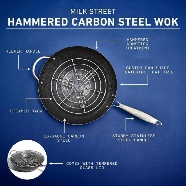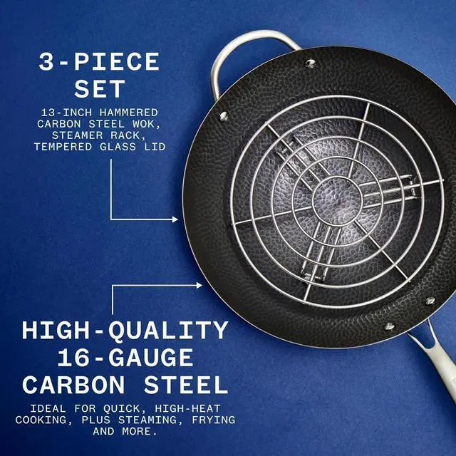 Included Steamer Rack: Turn the wok into a steamer for vegetables, dumplings or fish.