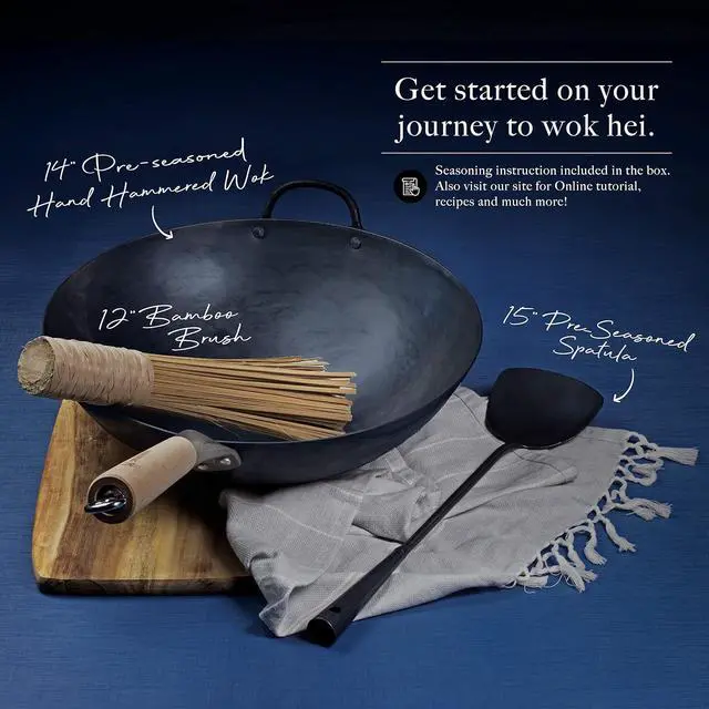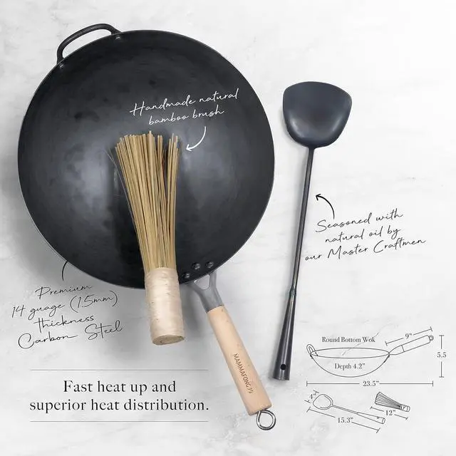 Complete Set with Wok Spatula and Bamboo Brush: Includes wok, spatula, and brush for all your cooking needs.