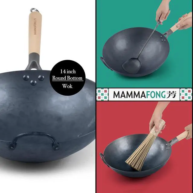 Pre-Seasoned Round Bottom Design: 14 inch round bottom wok with pre-seasoned interior for easy cooking.