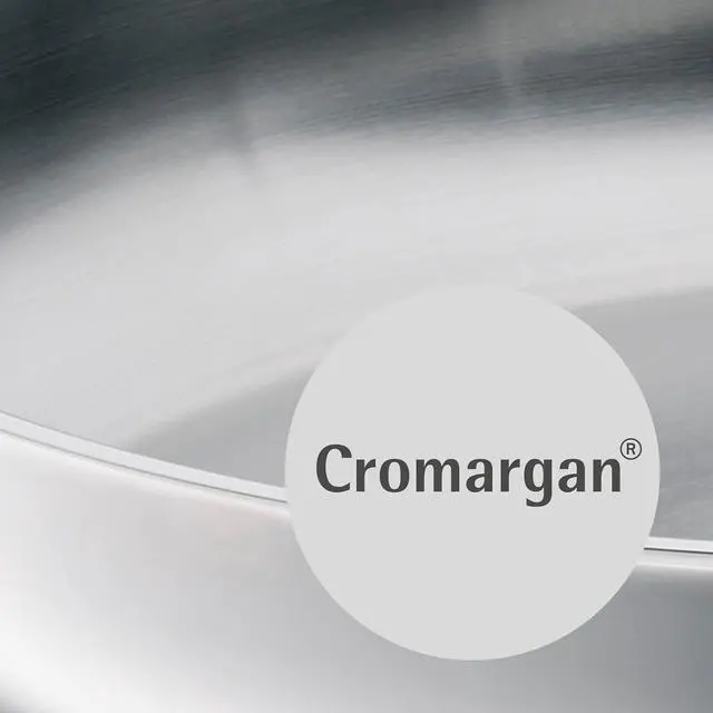 Material: Cromargan Edelstahl Rostfrei 18/10 - spülmaschinengeeignet, pflegeleicht, geschmacksneutral und säurefest. Ideal für scharfes Anbraten bei hohen Tempera