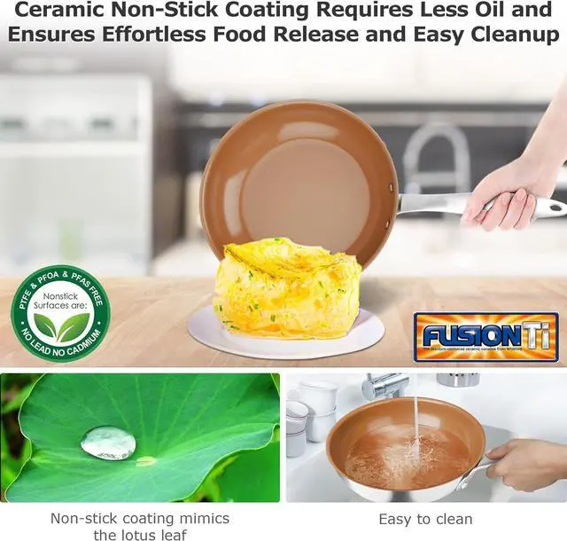 FUSION Ti Healthy CoatingUnlike typical ceramic pan, this Duxtop frying pan features a FUSION titanium-reinforced ceramic coating from Whitford. Free from PFAS, PFOA, PTFE, Lead or Cadmium, it offers superior non-stick properties, enhanced durability