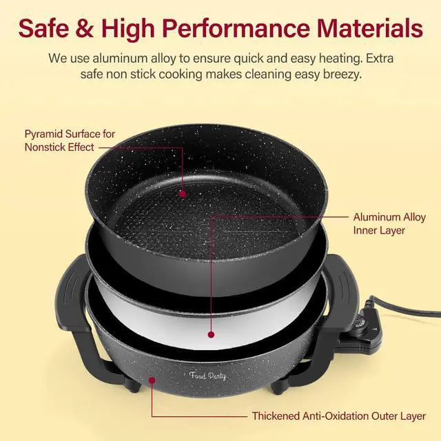 5 Ranges Temperature Control & A recipe book - this skillet comes with 5 temperature ranges to make cooking easy. A complimentary cuisine book with various Asian cooking recipes is included.