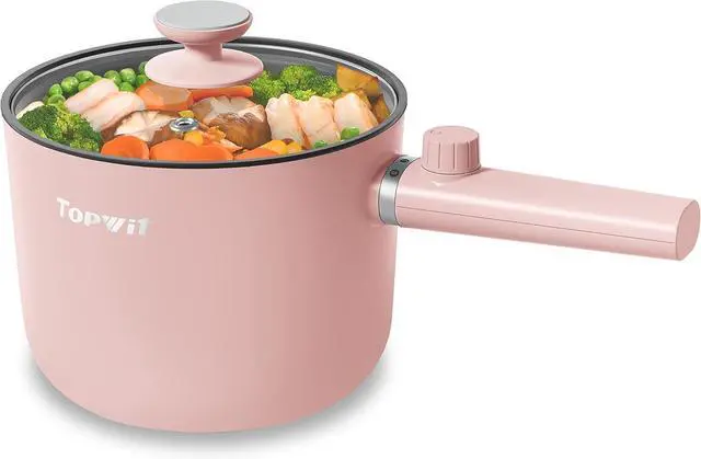 Dual Safety ProtectionEquipped with the round-shaped embedded heating element technology, this ramen cooker can keep your food heated evenly and prevent the foods from burning. At the same time, Topwit electric hot pot has the over-heating protection and boil dry protection device, effectively protect the pot from overheating and continuously boiling when it is at a dry burning and overheating status.