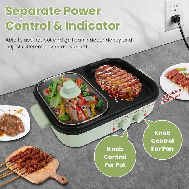 2 Heating Power & Separate Control: Dual temperature control knobs allow independent heating power for the pot and grill to cook various food. With 350W and 650W power levels for fast and efficient cooking.