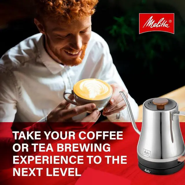 Melitta Precision Pour X Stainless Steel Gooseneck Electric Kettle with Wooden Handle and Knob