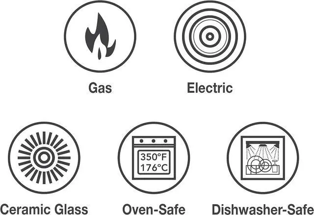 VERSATILE COMPATIBILITY: Suitable for gas, electric, and ceramic glass cooktops (not suitable for induction). Oven safe up to 400°F / 204°C.