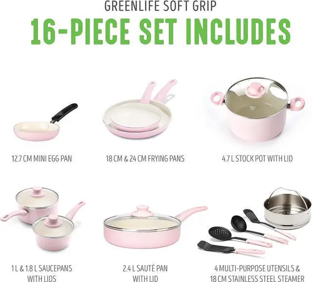 SET FOR EVERY MEAL: 4 mini frying pan, 7 and 9.5 frying pans, 1QT and 2QT saucepans with lids, 5QT stock pot with lid, 2.5QT sauté pan with lid, 7 stainless steel steamer, and 4 kitchen utensilsyour kitchen essentials in one set.