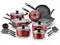 Set includes: 8" Frying pan, 11" Frying pan, 10.25 " Square Griddle, 1QT Saucepan with lid, 2QT Saucepan with lid, 3QT Saucepan with lid, 4.5QT Sautepan with lid, 5QT Dutch Oven, 5 Tools.