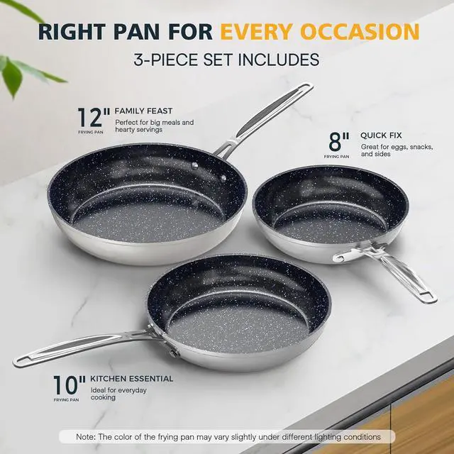 ALL COOKTOP & OVEN SAFE Every piece of the frying pan set is also safe for use on all cooktops including electric and gas stoves. They are oven-safe up to 500°F for seamless transition from stove to oven.