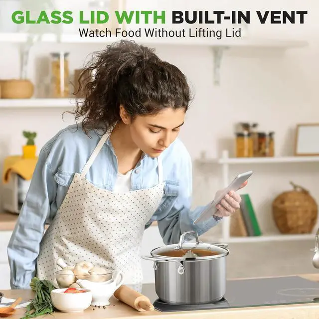 QUARTS: The Stainless Steel Cooking Pot features 3-quart capacity with a tempered glass lid which is the perfect size for boiling eggs, cooking noodles, simmering stocks, and soups or making sauces. Perfect for home cooking