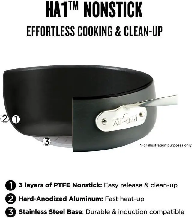 High Quality Performance with Everyday Convenience - HA1 Nonstick heavy gauge aluminum and stainless-steel base deliver even heat for consistent, delicious cooking. The high-quality PTFE nonstick brings a long-lasting and easy release when cooking