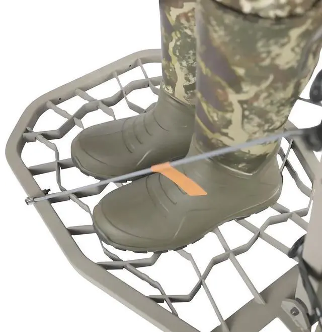 The Raider Hang On Treestand is made for more permanent stand locations. The Raider Hang On comes with an oversized textilene seat that contours to your body in the seated position. The unique welded platform makes the stand easy to hang and provides a no-slip grip for cold and icy conditions. The extra-large platform offers comfort for all-day sits yet is light enough to compliment the mobile whitetail hunter.