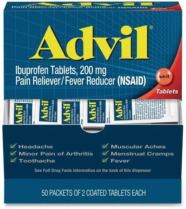 • Description: Ibuprofen Tablets, 2/Pack, 50 Packs/Box