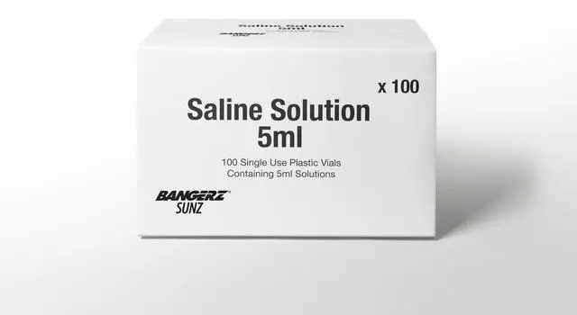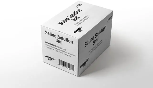 Saline, 5ml unit, box of 100 units. Cannot be used with nebulizer