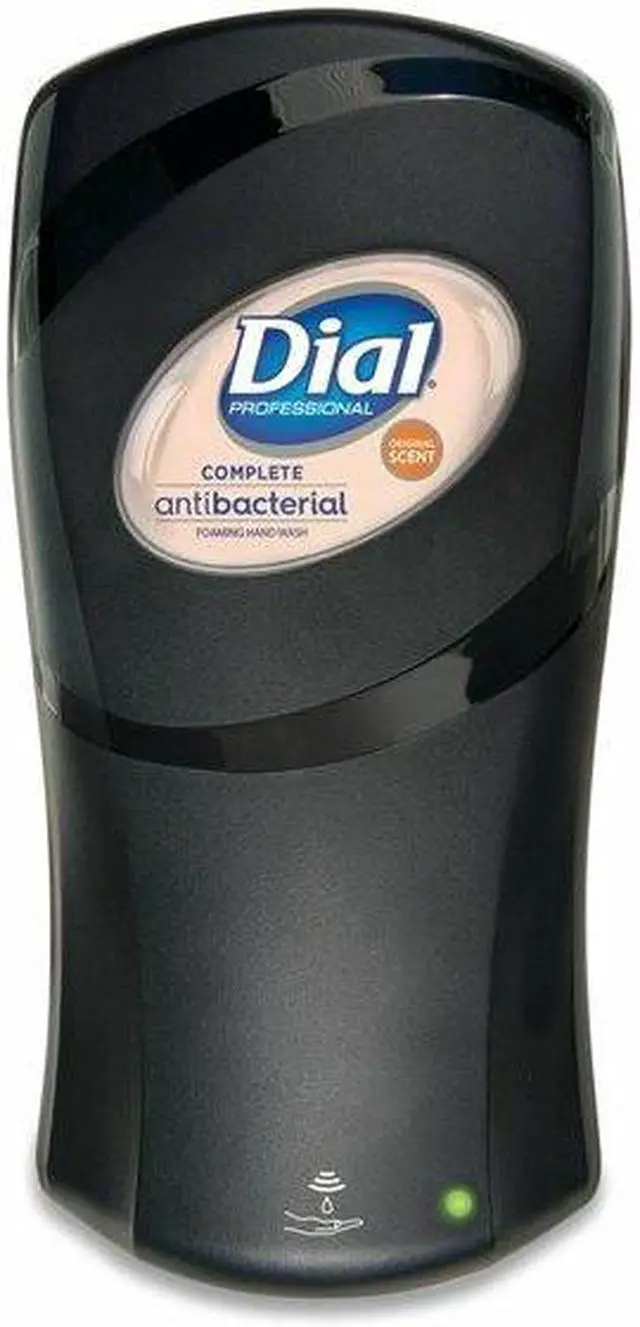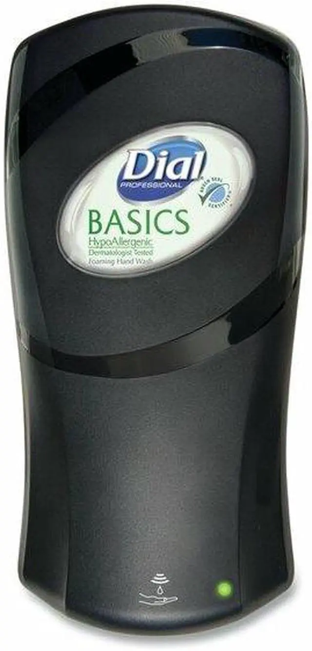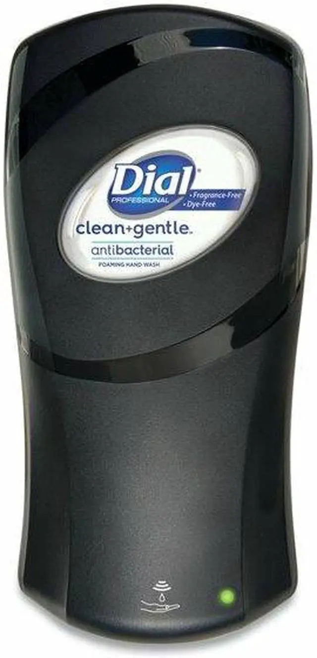 Dial FIT Touch-Free Dispenser - Automatic - 1.06 quart Capacity - Support 4 x D Battery - Refillable, Durable, Touch-free - Slate - 1Each FIT Touch-free Dispenser features a small footprint with subtle curves that complement the aesthetics of any washroom. Enjoy thick, rich foam from a state-of-the-art pump. High-efficiency engine provides an industry-leading precise activations - more than 90, 000 - to maximize housekeeping efficiency. Clear side-panel strip provides fill-level visibility without opening. Touch-free unit runs on four D alkaline batteries (included) and can dispense one, two or three shots per activation.