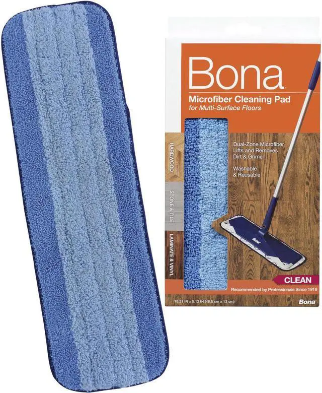 Mop Pad, Material Microfiber, Mop Connection Type Hook-and-Loop, Overall Width 15 1/2 in, Overall Depth 5 1/2 in, Launderable Yes, Color Blue, Dry Weight 5 oz, Includes Wet Mop Tailband No, Compatible Grainger Part Number 2VZK4, Compatible Manufacturer Part Number WM710013393, Features For Application of Polish, Fits Bona Family of Mops, For Hard-Surface Floors, Connection Thread Type Not Applicable, Headband Size 1/2 in, Includes Handle No, Mop Style Flat, Product Type Wet Mop Head. This item has been restricted from sale in the following state (s): []