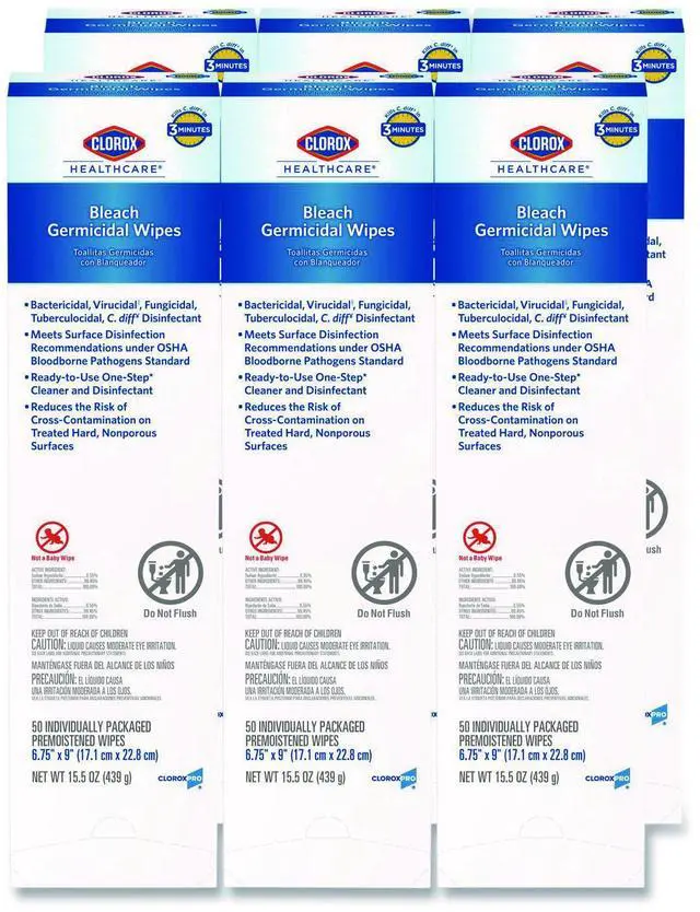 Bleach Germicidal Wipes Individual Wipes 1-Ply 6.75 x 9 Unscented White 50/Box 6 Boxes/Carton 31424