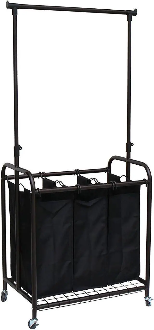 The perfect solution for all of your laundry tasks has arrived. The Oceanstar 3-Bag Rolling Laundry Sorter with Adjustable Hanging Bar not only organizes your laundry effortlessly but also greatly helps save you time. The wheels allow for smooth and easy mobility to go from room to room. It features 3 removable bags that you can just grab and go. The adjustable hanging bar offers additional storage to hang extra clothing. Effortlessly sort and organize your laundry by colors, towels, beddings, etc as you go. The Oceanstar 3-Bag Rolling Laundry Sorter with Adjustable Hanging Bar is the perfect addition for big families, individual use, houses, or dorms.